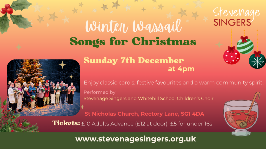 Our Christmas concert will be held on Sunday 7th December at 4pm, at St Nicholas Church, Rectory Lane, Stevenage.